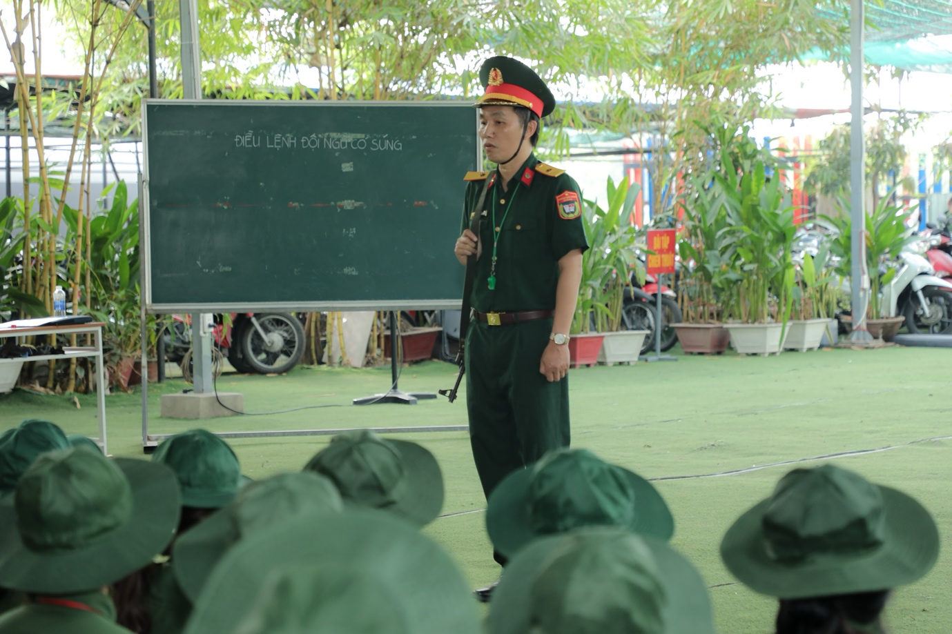 Giảng viên đang thực hiện bài thi của môn học Giáo dục quốc phòng và an ninh